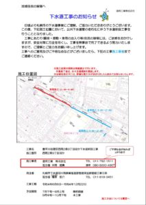 日頃から弊社の業務にご理解、ご協力いただきありがとうございます。 7月25日から、札幌市豊平区西岡2条9丁目、西岡4条5丁目、月寒西4条10丁目にて、下水道の新設工事を行います。 工事内容といたしましては、古い下水道管の […]