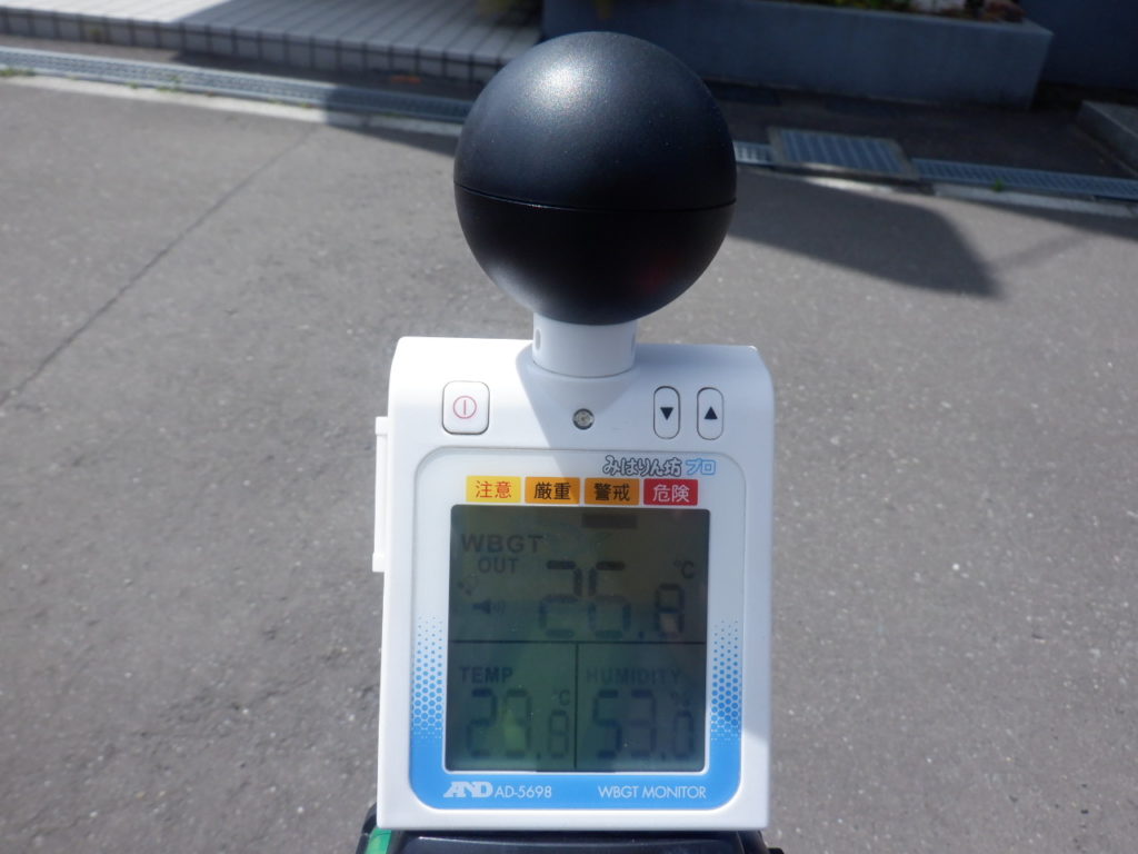 当現場での熱中症対策として熱中症指数モニター「みはりん坊プロ」を導入しました。