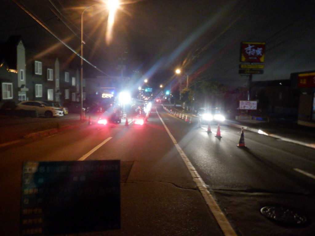 夜間工事を行っています。 2022年7月28日 最終更新日時 : 2025年6月12日 doho-8892 日頃より工事にご理解、ご協力いただきありがとうございます。 本日28日と明日29日は夜間作業になります。 特に福住・桑園通の澄川方面への車線は2車線を規制し 反対車線での片側交互通行となりますのでご注意ください。